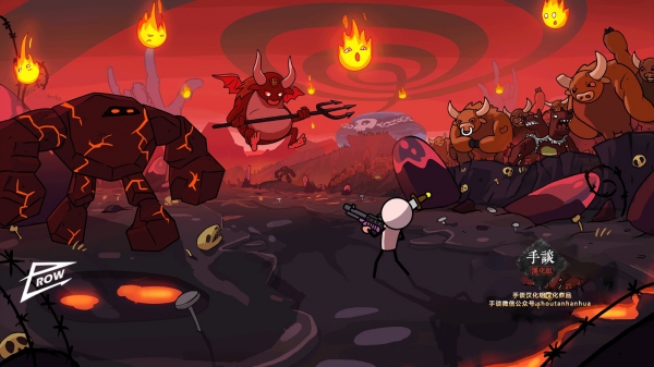 你的周围有一群恶魔、蛮牛、火球之类的奇特生物正在对你发起攻击。