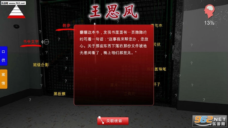 王思凤游戏是一款趣味十足且人气颇高的推理解谜游戏。故事围绕小学五年级学生王思凤的突然失踪展开——这起案件毫无征兆,来得十分蹊跷。作为顶尖侦探,你受上级指派负责侦破这桩疑案。为了精准掌握失踪者的相关信息,你前往学校展开调查。请务必仔细搜寻,任何可能的线索都不要错过。