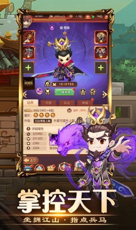 各具特色的武将:游戏收录了众多三国历史上的知名武将,每位武将都具备独特的技能与鲜明特点,玩家能够依据自身需求挑选并培养武将,从而打造出属于自己的强大阵容。