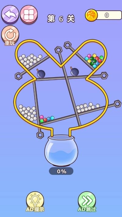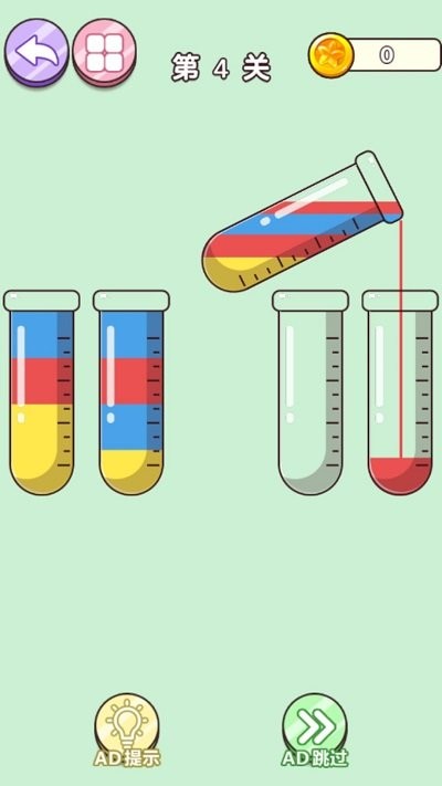 关卡数量众多,玩法各有不同,有的要分装不同颜色的液体,有的需要将水果装进瓶子里,很有挑战性。