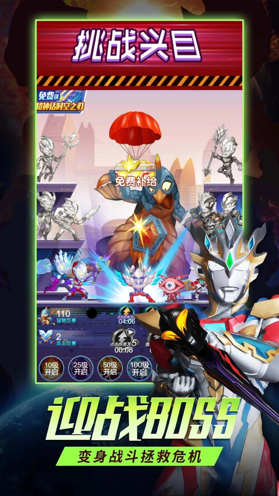 奥特曼英雄之刃是一款充满激情的游戏,为玩家带来前所未有的奥特曼战斗体验。在这款游戏里,你可以化身为奥特曼,和其他超级英雄携手并肩,守护地球免遭邪恶势力的侵害。动感十足的画面、紧张刺激的战斗、震撼人心的技能特效,会让你仿佛置身其中,尽情享受无穷的战斗乐趣。