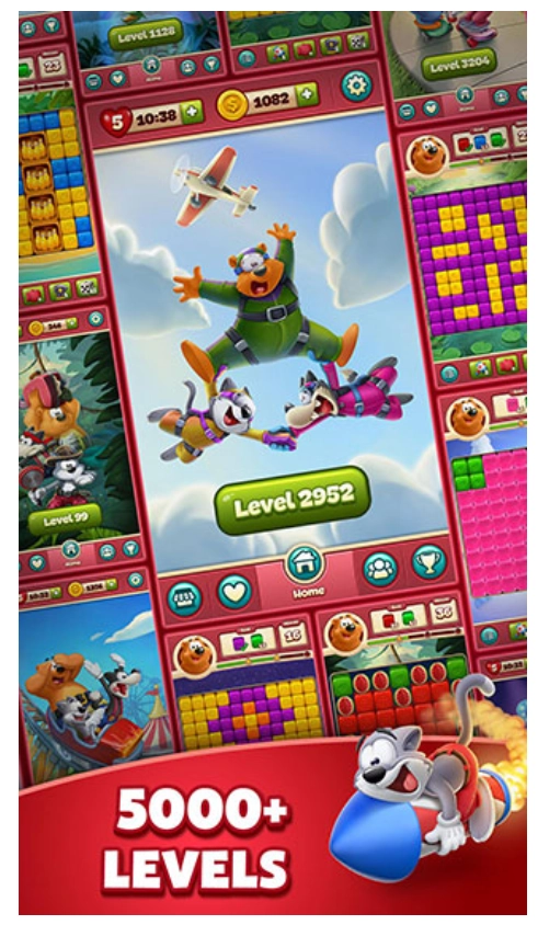 2、全新的剧情发展内容,玩家进入游戏后,将与库柏猫、沃利狼、布鲁诺熊一同在卡通世界展开冒险,主要的任务就是不断的消除,快速的解锁更多的关卡,展开惊喜的挑战,顺利体验。