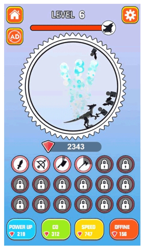 4、玩家需要通过点击屏幕下方的各种攻击手段,不断消灭屏幕中出现的敌人,使用各种手段来组合攻击,不同攻击在针对特定龙种时会有奇效,轻松的开启更多有趣的任务。