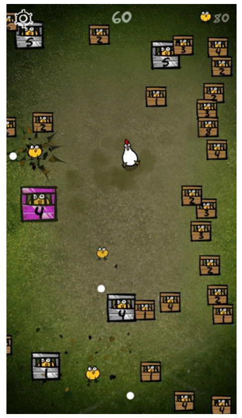 4、操控你的小鸡发射鸡蛋,以此射击那些鸡笼;被解救的小鸡会加入到玩家自己的小鸡队伍里。
