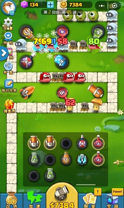 1、功能各异的小炮台谨慎摆放,根据进攻路线选择合适的放置方位,尽可能提高整体胜率应对不同的敌人怪物。