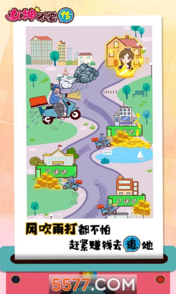 为了讨得女神的欢心,努力赚钱买礼物讨好她肯定是必不可少的,快骑上心爱的小摩托,勇敢面对困境,用尽一切办法克服困难把外卖送出去吧!