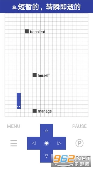单词蛇是一款集娱乐与背单词功能于一体的掌上学习软件。用户借助屏幕呈现的单词释义开展记忆活动,在游戏进程中轻松完成单词记忆,进而强化对单词的印象,实现有效牢记单词的目的。