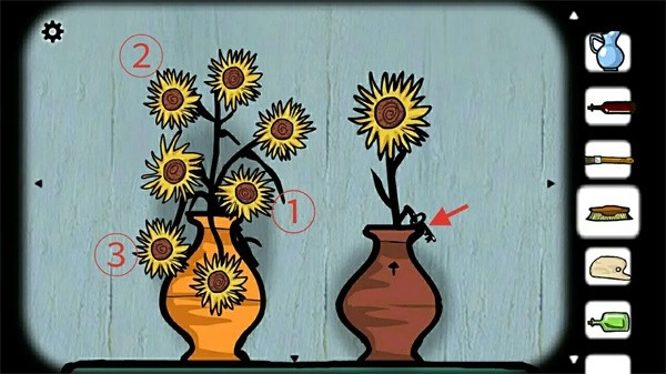 将葵花插入花瓶后,点击左侧的葵花使其缩小,这样右侧的葵花就会随之升高,进而获取钥匙。
