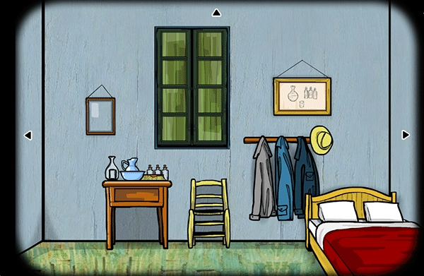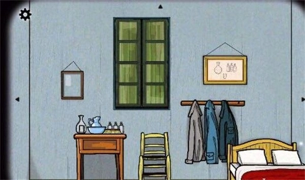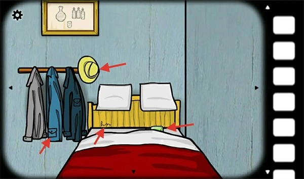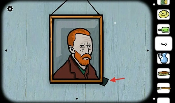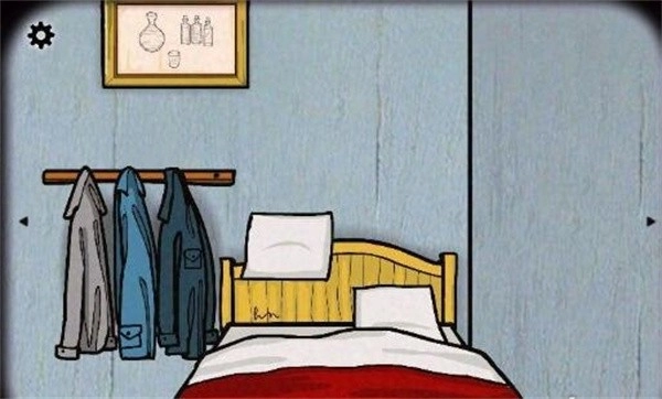 点击床边的画,然后根据提示在房间里寻找带有对应符号的位置……