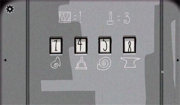 看到门后,点击那扇灰色的门。依据门上方给出的两个物品提示,用天平称量出其余物品所代表的数字。输入1458后,门打开即可进入房间。