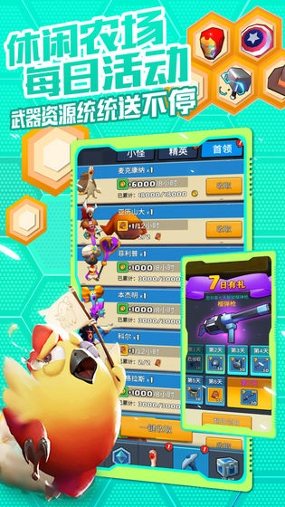 小炫来教你:每当通过固定关卡时,就会解锁新的农场助手,每个农场助手每隔一段时间都能产出游戏里的所有资源。