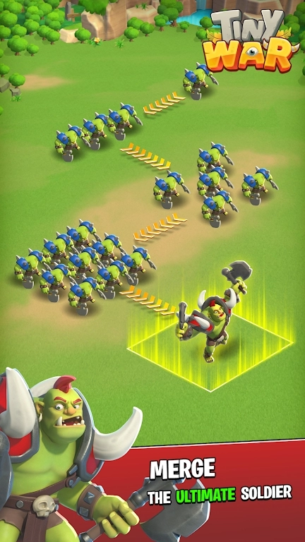 《Tiny War游戏》的合成玩法被直接运用到实际战斗场景里,该游戏的合并机制既注重兵种的升级,也注重兵力数量的累积。多数兵种在合并升级后,棋子所包含的士兵数量会有所增加,而且随着关卡的不断推进,玩家能够派上场的棋子数量也会越来越多。所以在战斗过程中,常常能看到双方都投入了大量兵力。