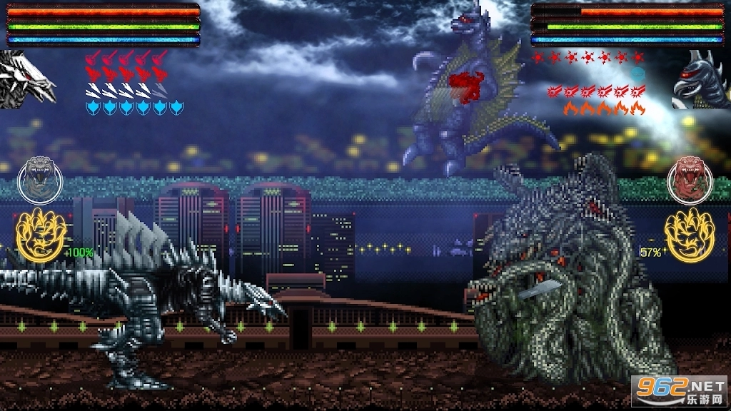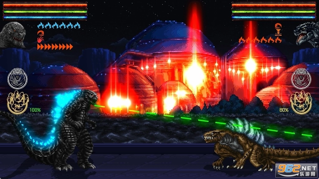 这款游戏的核心玩法是围绕2D巨型怪物之间的战斗展开的。玩家可以操控怪物进行近距离的混战、施展抓取类攻击,或是发动光束对轰。每一个登场的角色都拥有专属于自己的特殊力量与能力。值得一提的是,所有角色都具备特殊的“愤怒”攻击——这是他们最为强大的技能,能够在任何关键时刻释放以改变战斗的局势。在部分关卡场景中还会出现建筑物,若将怪物抛掷到建筑物上,或是建筑物发生倒塌并砸中怪物,都可能引发危险的效果。