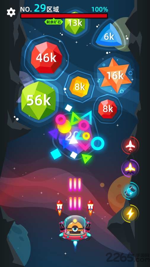在游戏里借助飞船发射器,击溃拥有各类能力的宝石,搭配使用不同副武器,能让你畅享满屏爆炸带来的极致快感与刺激体验。