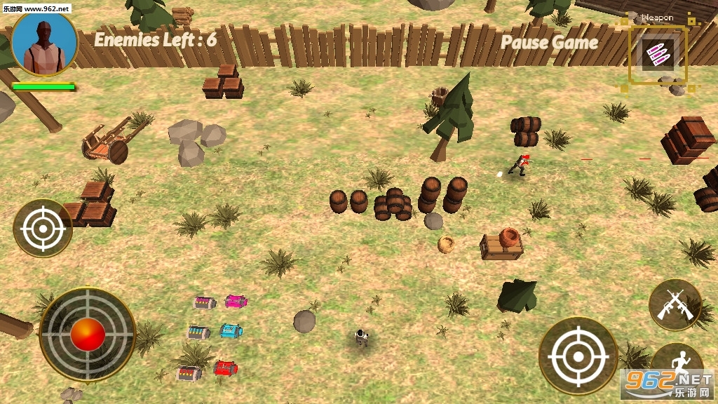 这些桶和板条箱在游击战场景里也配备了救生套件。智能射击类游戏有着丰富的