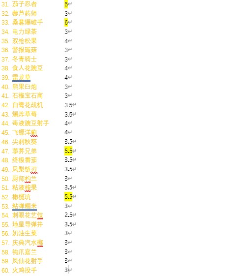 新增植物包括:白菜拳击手-菜问、回旋镖射手、巴豆、椰子加农炮、冰冻生菜、闪电芦苇、豌豆荚、火龙草、弹簧豆。