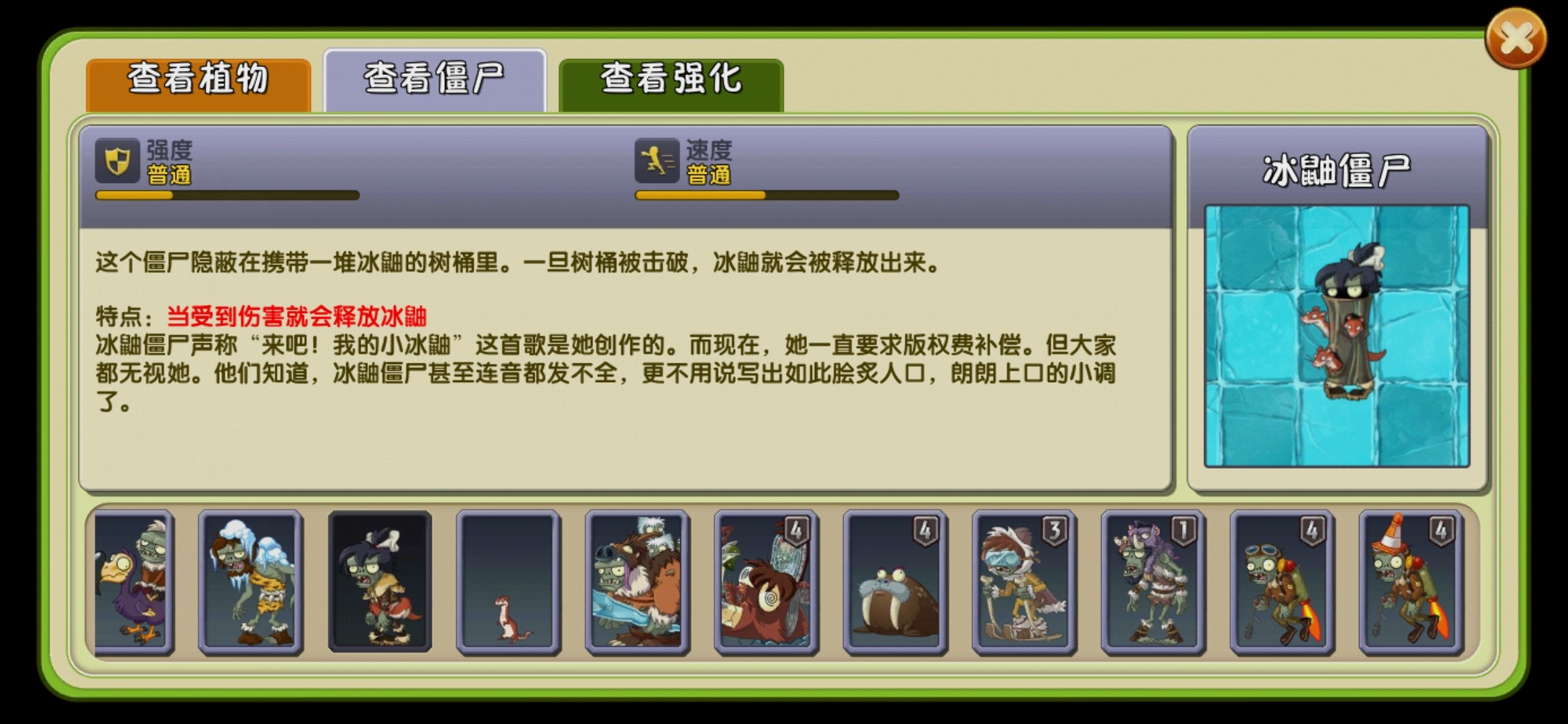 冰鼬僵尸的树桶会在其生命值低于总生命值的80%且未处于眩晕状态时破碎,随后在约2至4秒内,于自身原本所在的格子及其上下相邻格子中释放总计约6到8只冰鼬。