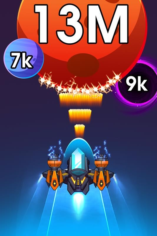 这是一款趣味性十足的休闲弹幕射击游戏。玩家将操控自己的小型战斗机,在游戏背景中穿梭,消灭前方出现的所有行星。通关后获得的金币奖励,可用于购买各类道具,玩家需要以此逐步升级自己的飞机。