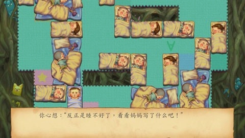这时会进入一片独特的梦幻区域,却看到所有木马都没有悬空,得把被子拉到对应的空位上。这虽然需要动点儿脑筋,但难度不算大。完成6次被子的推拉操作后,中间就会出现一条隧道,按照位置把不同形状的块体放进去,就能前往下一个地方了。