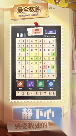 《最全数独》手机版以经典数独玩法为基础,搭配创新多元的谜题设计,在益智游戏领域崭露头角。简洁明了的规则让玩家轻松上手,享受流畅的游戏过程;科学分级的难度体系,适配不同年龄段玩家的挑战需求;而精致的手账风界面,则为游戏体验增添了一份温馨愉悦的氛围。