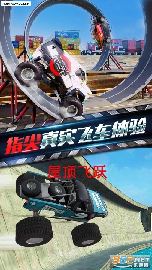真实的动力传动、悬挂系统、减震效果、车轮摩擦与空气阻力,搭配抢眼逼真的场景和车辆,加上让人着迷上瘾的高度可玩性与生动音效,将为你打造出沉浸式的3D高空飞跃体验!