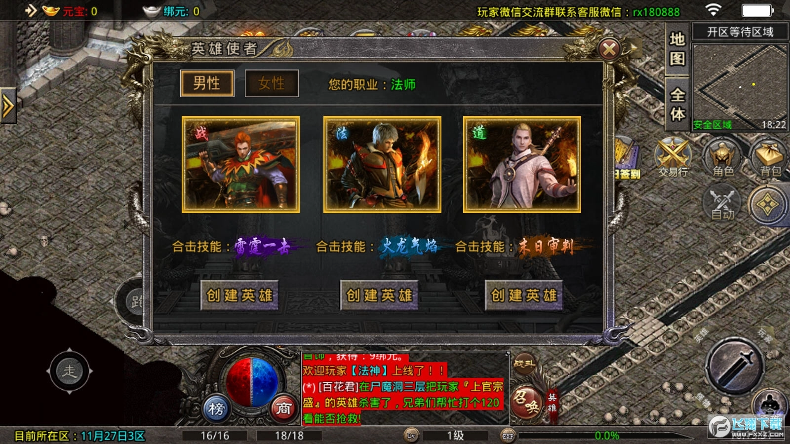经典三职业设定,主角与英雄都能选择战法道!丰富的职业搭配,触发合击时威力惊人!