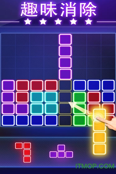 玩法你需要拖动方块,把它们放置到最合适的位置,以此消除那些带有闪光效果的方块,从而获取相应的分数。