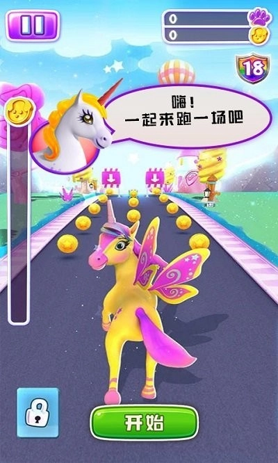 独角兽天性十分善良,快带领你的会说话的独角兽开启一段奇妙的童话之旅吧!你可以从8只可爱又神奇的马、独角兽或小马中挑选一只,在疾驰、冲刺和滑过障碍物的过程中收集硬币,争取获得更高的分数!