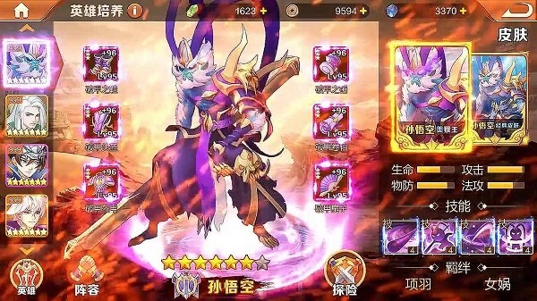 仙族选择斗战圣佛,是因为其第三技能“横扫四方”可对敌方前两排造成高额伤害,若走暴击流派,甚至能瞬间击溃敌方前两排。