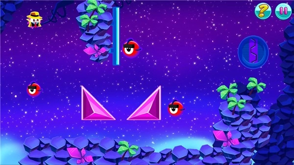 游戏包含不同的难度区间和休闲主题,你能通过中等难度的物理谜题,体验50个精心设计的物理关卡——这些关卡都是根据玩家水平量身打造的。它有着独特的霓虹视觉风格和欢快的背景音乐,你要操控角色从一个地方跳到另一个地方,还能让蹦床从霓虹灯块上反弹。你需要创建激光和连锁反应,利用反弹来消灭敌人。