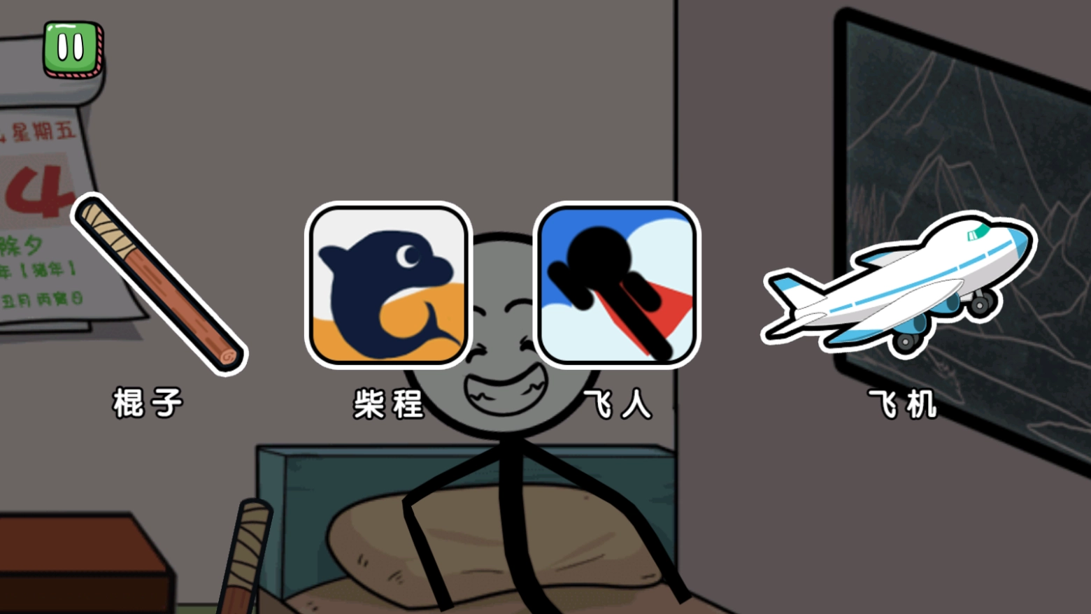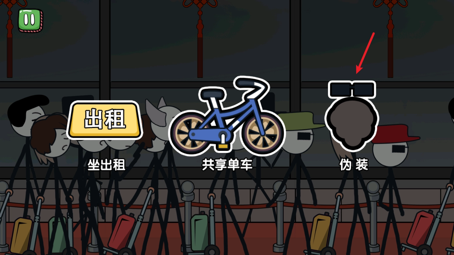 进入里面后,火柴人开始想象自己回家过年的场景,此刻他得挑选一种出行的方式。