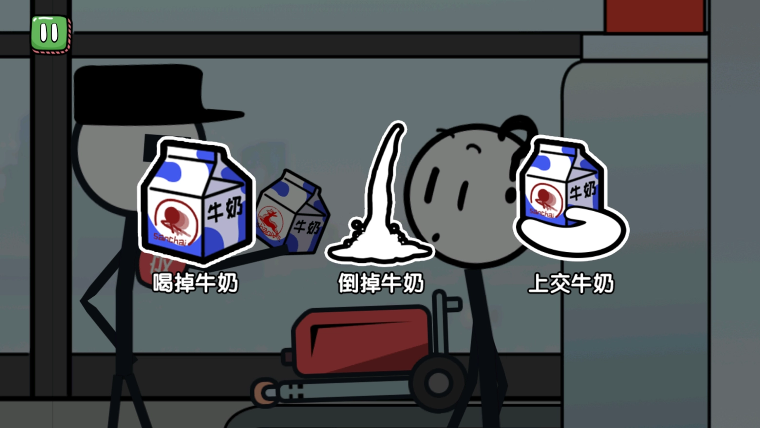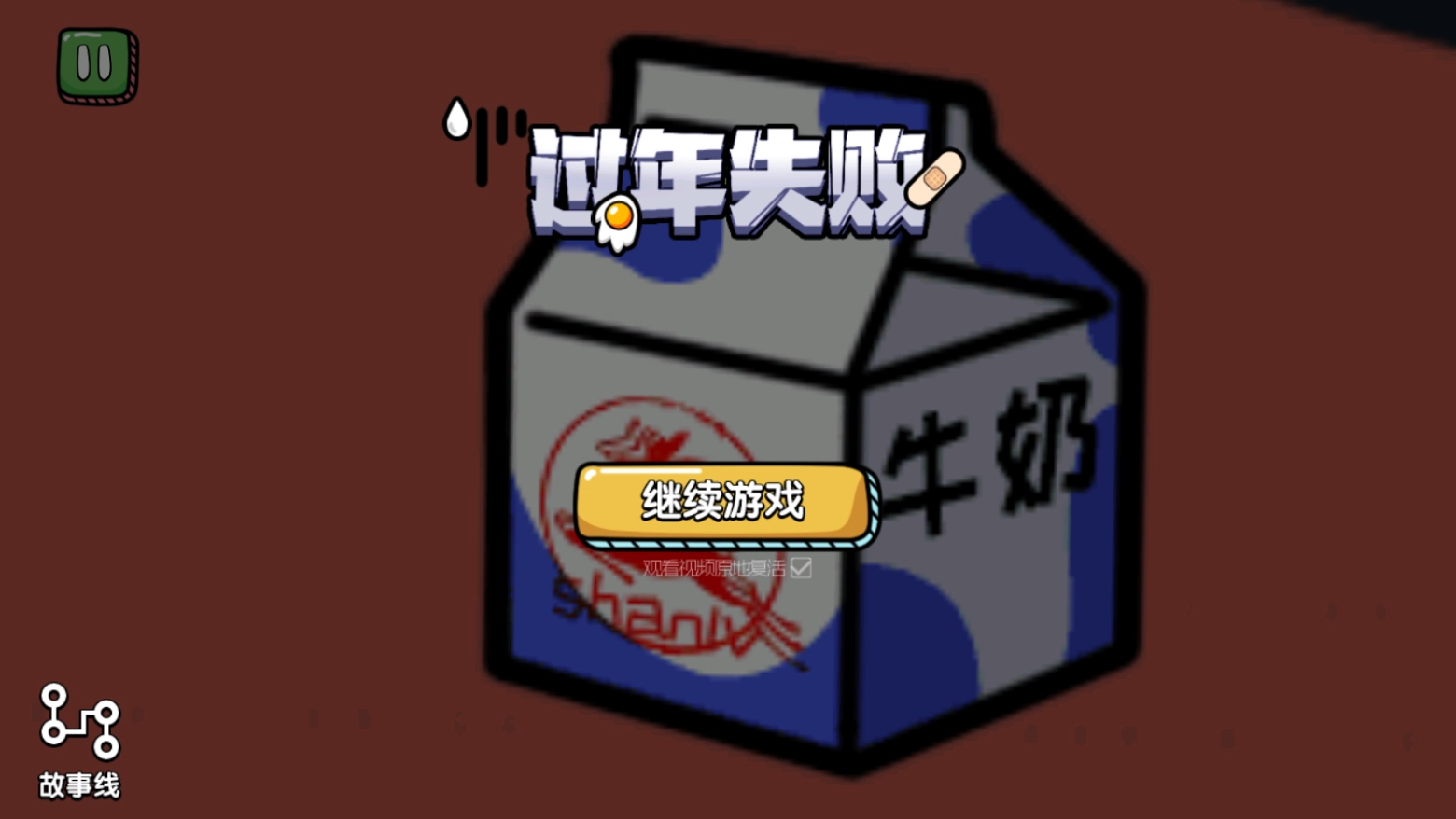 我们选择把牛奶喝了,结果没走两步就直接倒在地上,游戏失败啦!(给牛奶特写的时候才看清楚是三鹿,太好笑了哈哈)