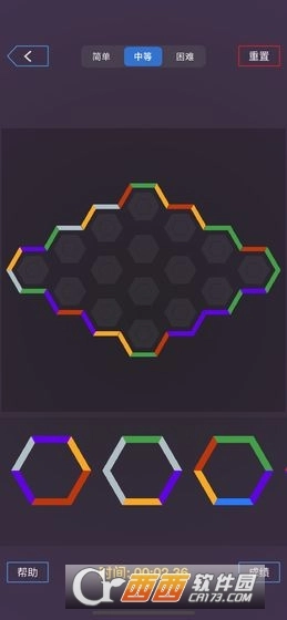 在答题区域内,分布着若干六边形碎片,你需要将这些碎片拖动至盘面上的对应位置,与此同时,通过点击六边形来调整到合适的方向。