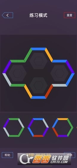 最初设计时,原本打算做一个观察类的比赛模式:提供六边形碎片,观察这些碎片拼接成的图形,再到候选区域找出与之对应的图形。