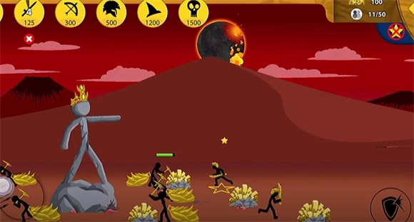 这一关地图里分布着大量金矿,开局优先全力生产矿工,接着派出一名剑士去袭击敌方矿工。这关建议选用骨王皮肤,它能把你击败的敌人转化为丧尸。等积攒到足够金币后,就选择召唤巨人,再搭配一些斯巴达战士,然后直接发起总攻。巨人的范围攻击可以快速消灭敌人,还能将他们转化为丧尸,凭借数量上的优势就能迅速取得胜利。