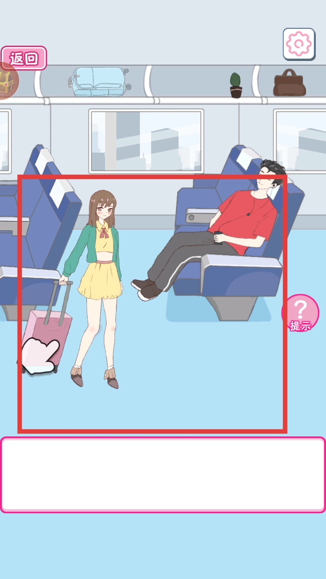 在列车车厢的关卡场景里,按照提示点击行李箱就能触发对话或互动事件,借助点击、拖动之类的操作,完成场景中的小任务,让男孩对女孩心生好感,从而推进关卡进度。