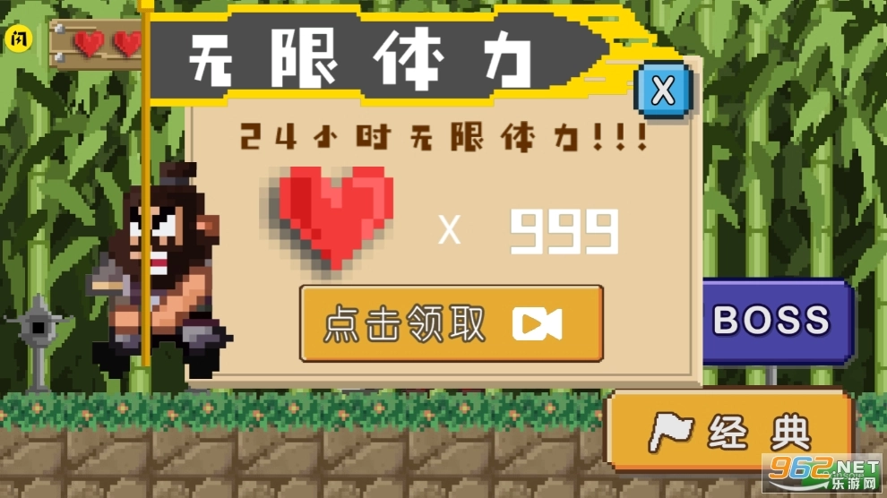 《实力不允许啊》是抖音平台上的一款像素风格平台冒险闯关小游戏,设有boss与经典两种挑战模式。游戏融合了i Wanna系列游戏的玩法特色,还加入了老八蜜汁汉堡等网红元素,玩家将化身为手持大刀的勇士,在游戏中穿越重重陷阱与障碍,与强大的boss展开激战,完成闯关任务,整个游玩过程十分虐心!