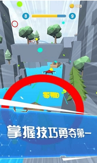 单手控制躲避障碍物,到达终点获得金币。