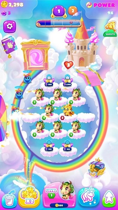 帮助独角兽们避开敌人的攻击,熟悉其中的全新技巧,这里有超多新颖的元素体系,让你随时都能体验到合成的乐趣。2265的玩家们需要把它们安置在云彩上让其成长,通过简单的合并升级玩法,不断进化解锁新形态,快速将独角兽合成到最高等级,另外还有大型道具可供使用,用来击败遇到的各种敌人。