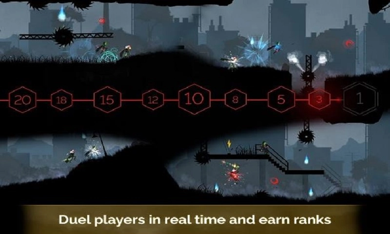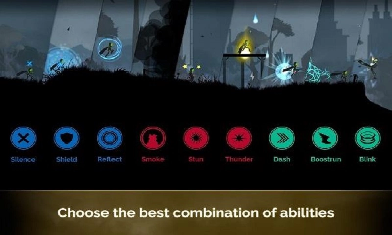 画面以暗黑风格为主,但角色并非粗糙简单的火柴人形象,每个跑酷动作与技能都十分真实刺激,特效也颇为华丽。玩家可以选择任意角色进行闯关,游戏