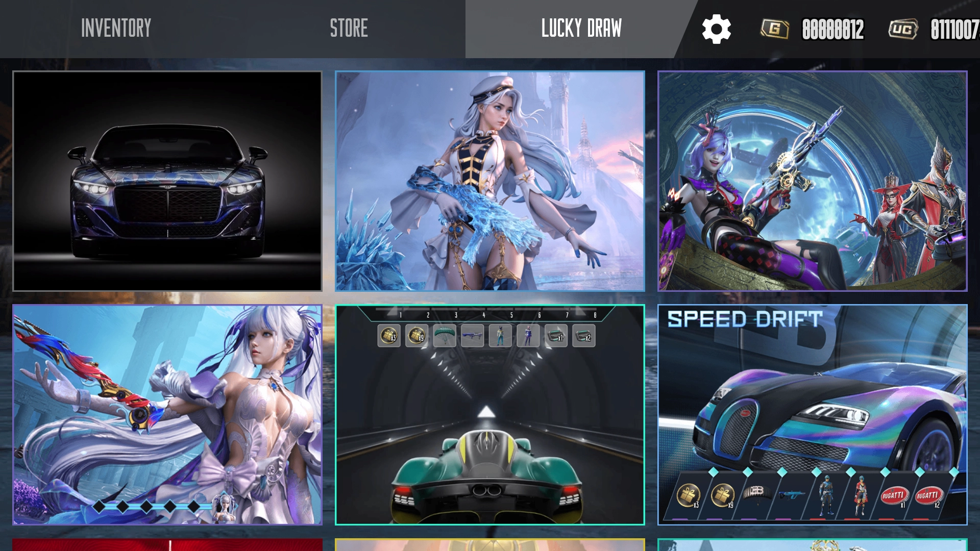 在背包中,你可以查看你抽中的各种皮肤;