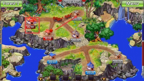 2、进入【Forest-1】关卡后,关注各建筑的进度数值,如【12/30】等,规划资源分配与建筑升级。