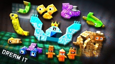 2、能够自由设计精灵的形象,精灵的攻击力和防御力由方块的类型与摆放方式决定,以此提升创造的自由度。