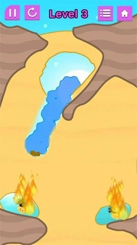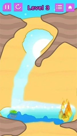 1、游戏沿用了鳄鱼洗澡的玩法模式,我们要引导水流移动,从而顺利把着火的房子扑灭。