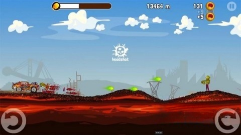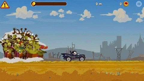 驾驶与求生:在横版2D公路上狂飙,控制转向时需小心,撞上僵尸将会减速,得在快速与安全之间找到平衡。