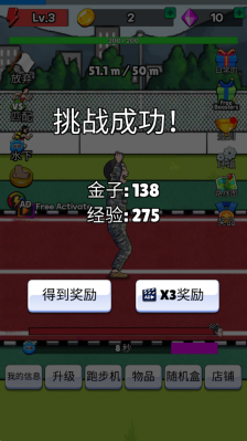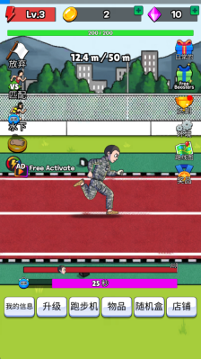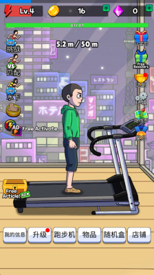 关卡设置方面,游戏包含多个难度循序渐进的关卡,每个关卡都有明确的特定目标等待玩家完成。角色系统上,提供了多款可选角色,每个角色不仅拥有独特的外观造型,还具备不同的基础属性;玩家可以通过收集碎片或金币解锁新角色,也能借助服装系统自由自定义角色外观,打造专属形象。此外,游戏的背景音乐节奏明快,能与角色的奔跑动作完美同步,进一步增强玩家的游戏沉浸感。1、进入游戏后点击屏幕即可在跑步机上跑步。