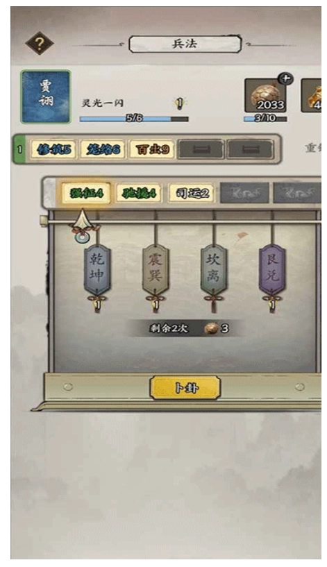 3、关于兵法,目前最多解锁3栏,不停地刷新就行。不要追求完美,999那是连氪金大佬都玩不起的,令牌永远都是不够用的。
