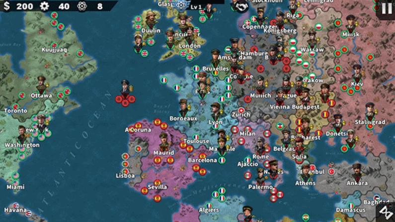 1、自由挑选一个国家,以战场为依托来建造城市、推动科技进步、生产军事力量,同时要依据全球局势的变动来调整自身的战略方向——或是向盟友提供支援,或是向其他国家发起战争以掠夺资源、击溃对手,最终达成胜利目标。