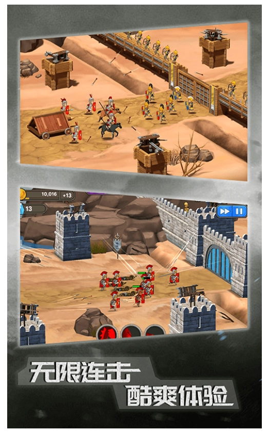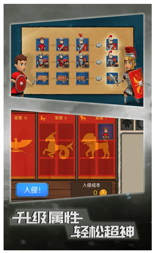 4、玩家可招募不同兵种、建设基地,通过不同的战斗考验、攻城战斗扩张领土,并尝试解锁各种英雄,爽快无比的策略内容,精巧安排防线,同时注意提升防御和攻击力,赢得战斗的胜利。