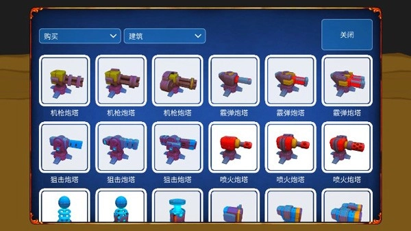 建筑在这款游戏中就是防御塔的类型,这里有机枪、狙击、喷火等多种炮塔类型,并且还有各种威力爆表的地雷和阻挡僵尸的路障等。由于武器要消耗弹药,弹药的补充又很贵,因此攒足资源,购买防御塔是必要的选择。